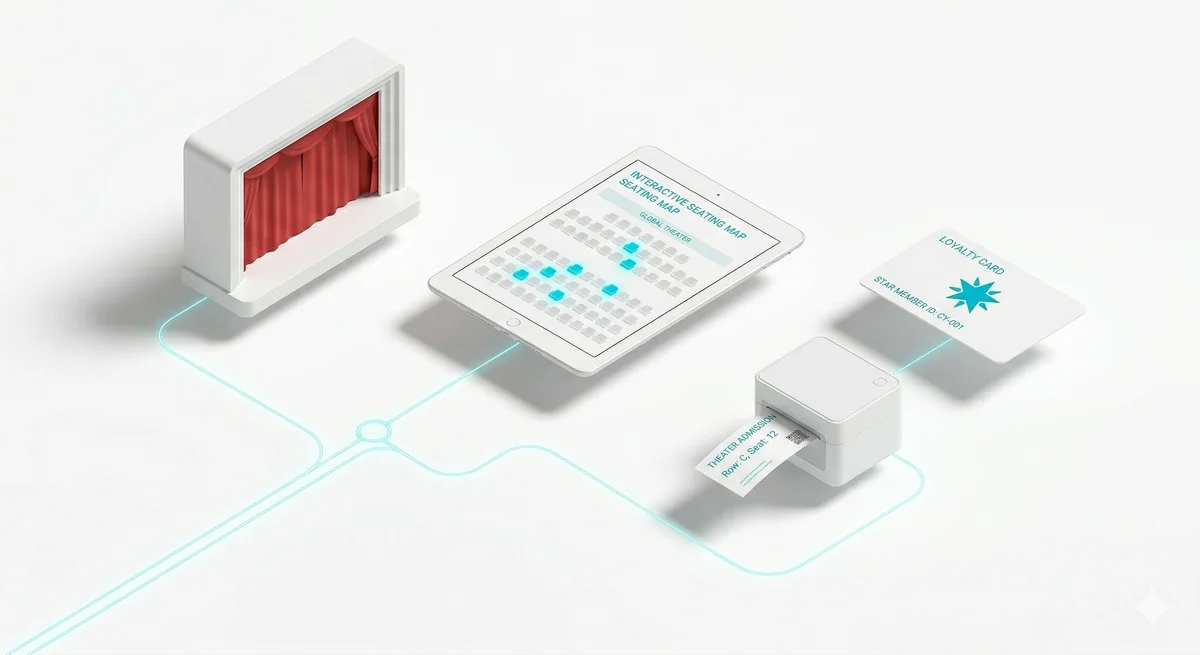 We provide both software and hardware for physical box offices. POS terminals, ticket printers, and barcode scanners. all connected to the same real-time inventory as online sales.