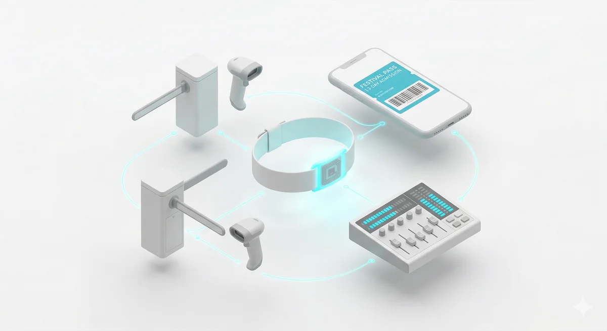 Fully integrated RFID and NFC wristbands with top-up, spending limits, and post-event refunds. Works with all major wristband providers.
